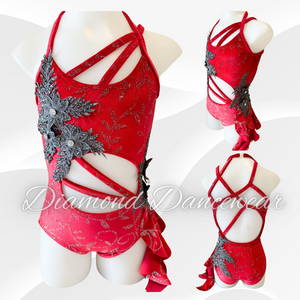 Girls Size 8 - Red and Charcoal Lyrical or Contemporary Dance Costume - In Stock